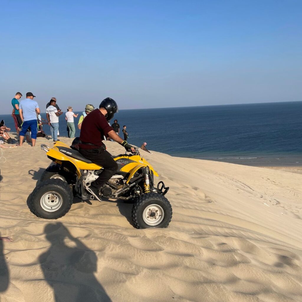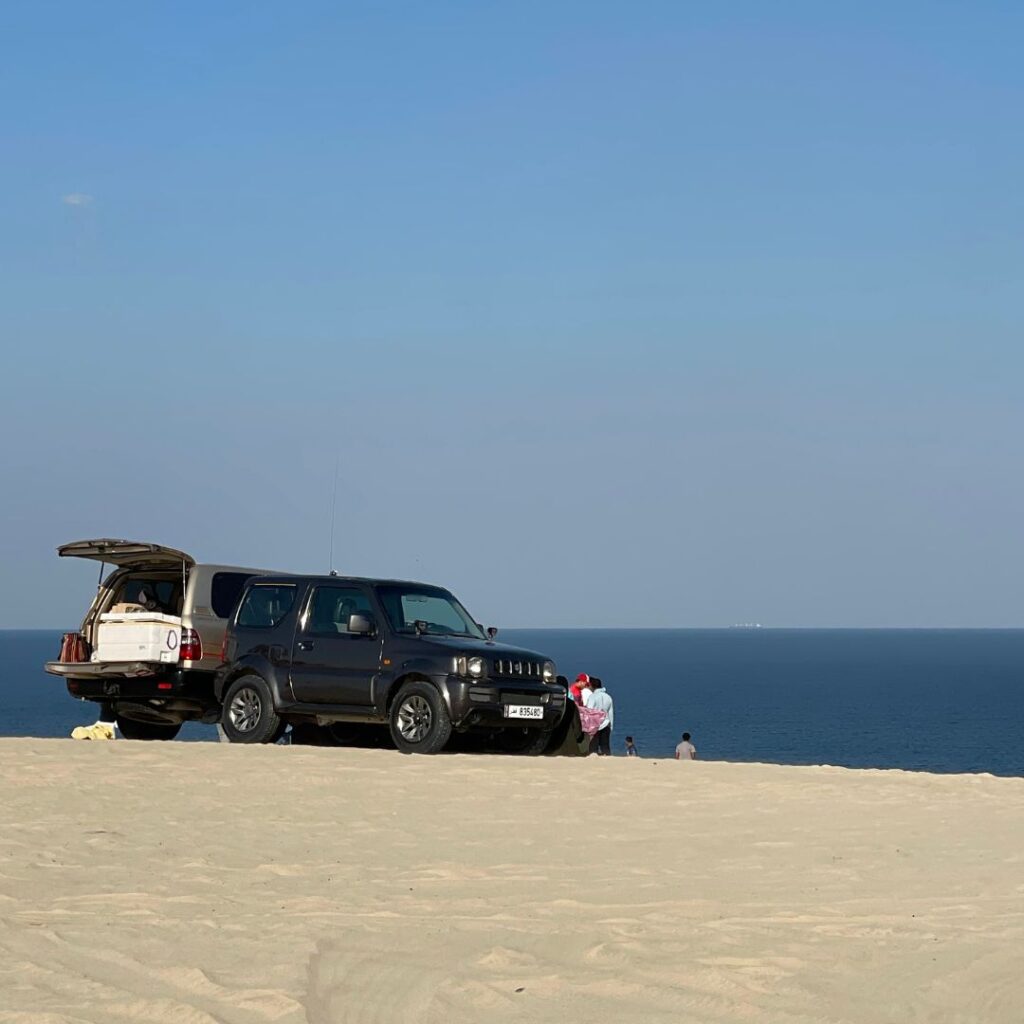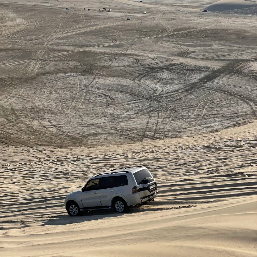 پہلی مارچ 2024 کو قطر میں ہمارا دوسرا دن تھا۔ صبح ہم سی لائن بیچ، مسائید کی طرف روانہ ہوئے۔ راستہ لمبا ضرور تھا مگر اردگرد کے مناظر اتنے دلکش تھے کہ سفر کا احساس ہی نہ ہوا۔ جیسے ہی ساحل پر پہنچے تو سنہری ریت کے ٹیلے اور نیلا سمندر سامنے پھیلا ہوا تھا۔ وہاں پہنچ کر اندازہ ہوا کہ یہ عام دن نہیں بلکہ جیپس کا شو بھی جاری ہے۔ وہی گاڑیاں جو پاکستان میں لگژری اور اسٹیٹس سمبل سمجھی جاتی ہیں، قطر کے لوگوں کے لیے محض کھلونے کی حیثیت رکھتی ہیں۔ گاڑیوں کا شور، ریت کے بادل اور ہر جمپ کے بعد تالیوں کی آواز نے ماحول کو مزید پرجوش بنا دیا۔ یہ سب دیکھنا خود ایک الگ ایڈونچر تھا۔