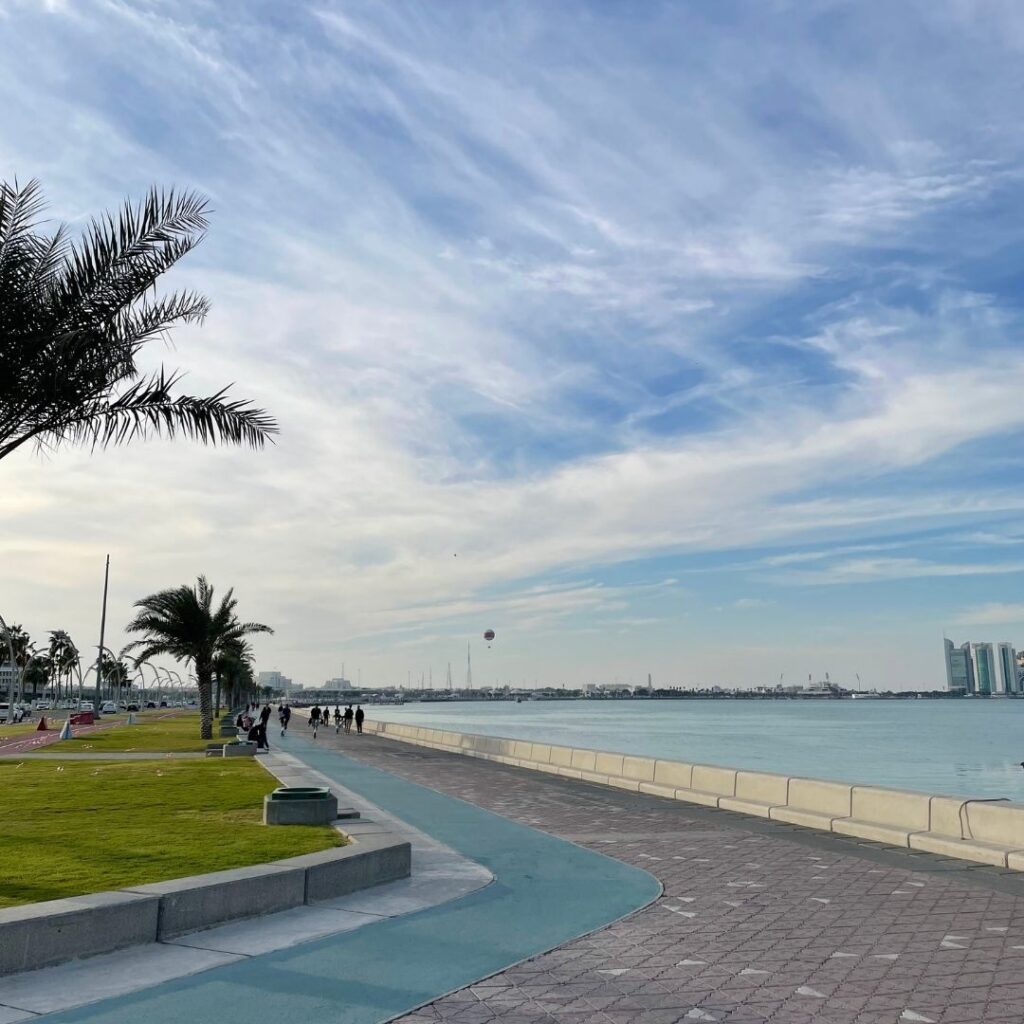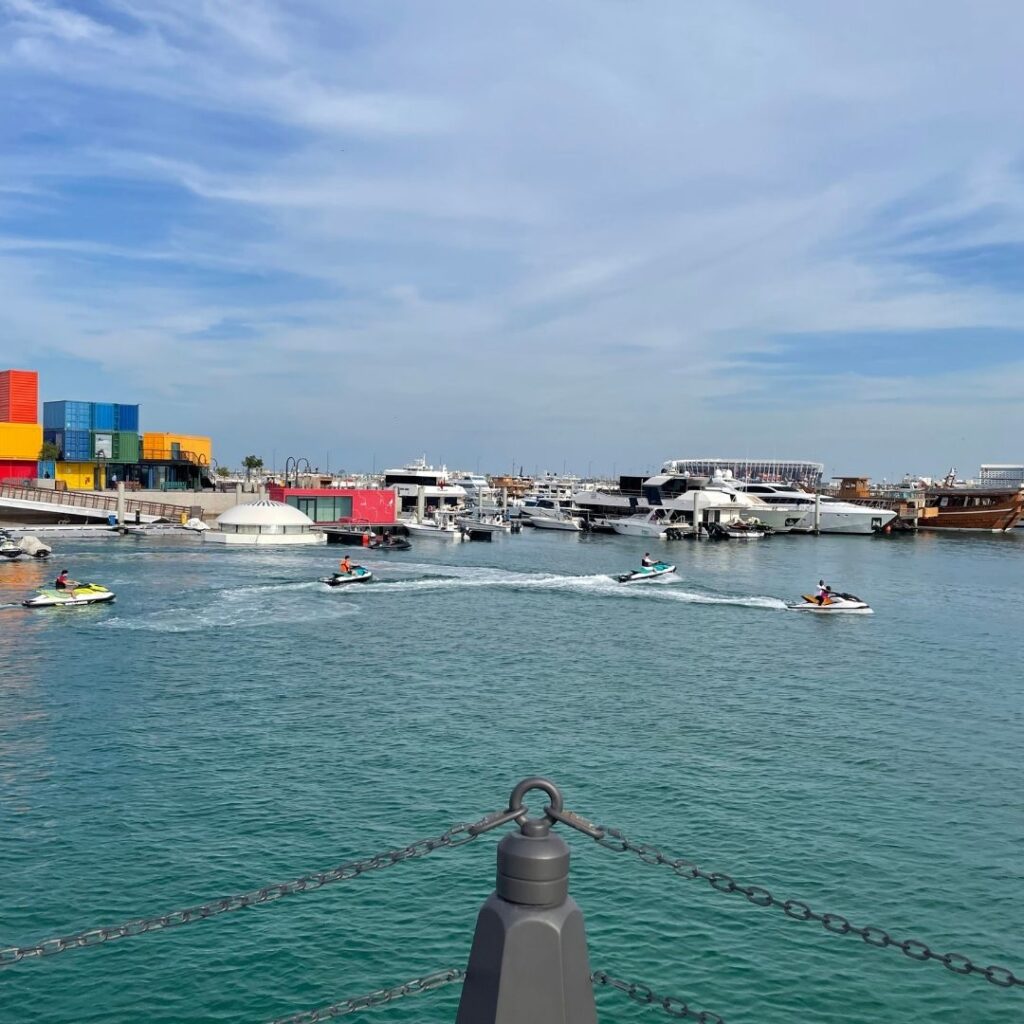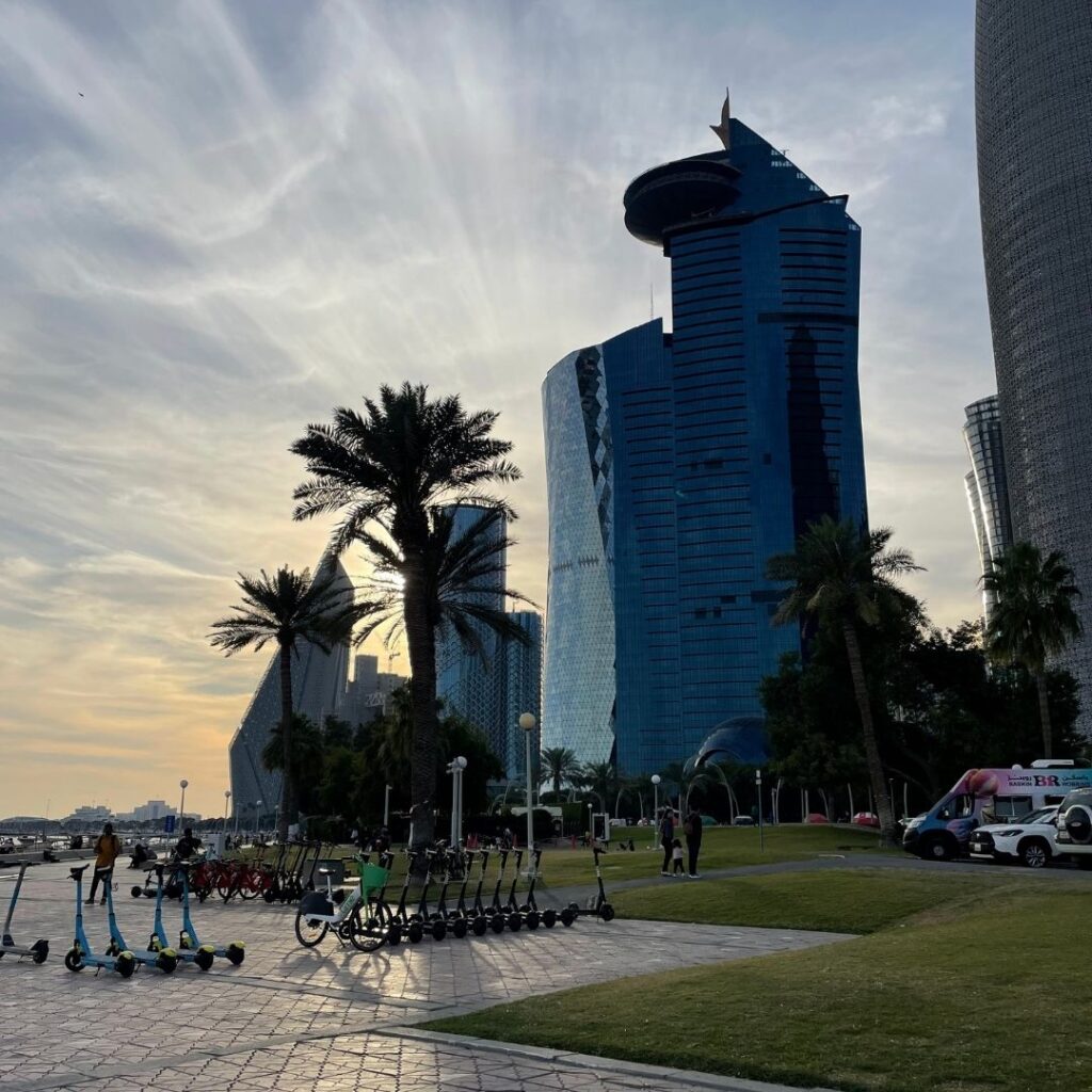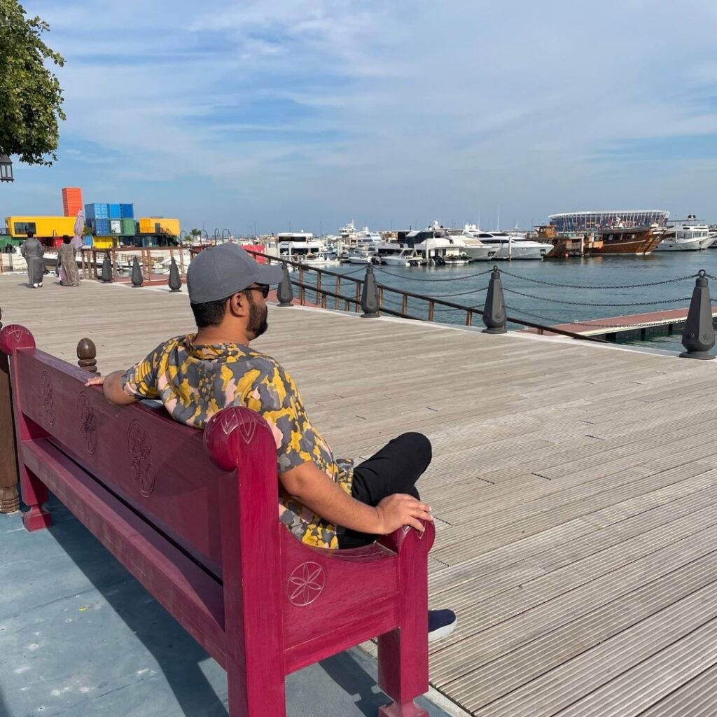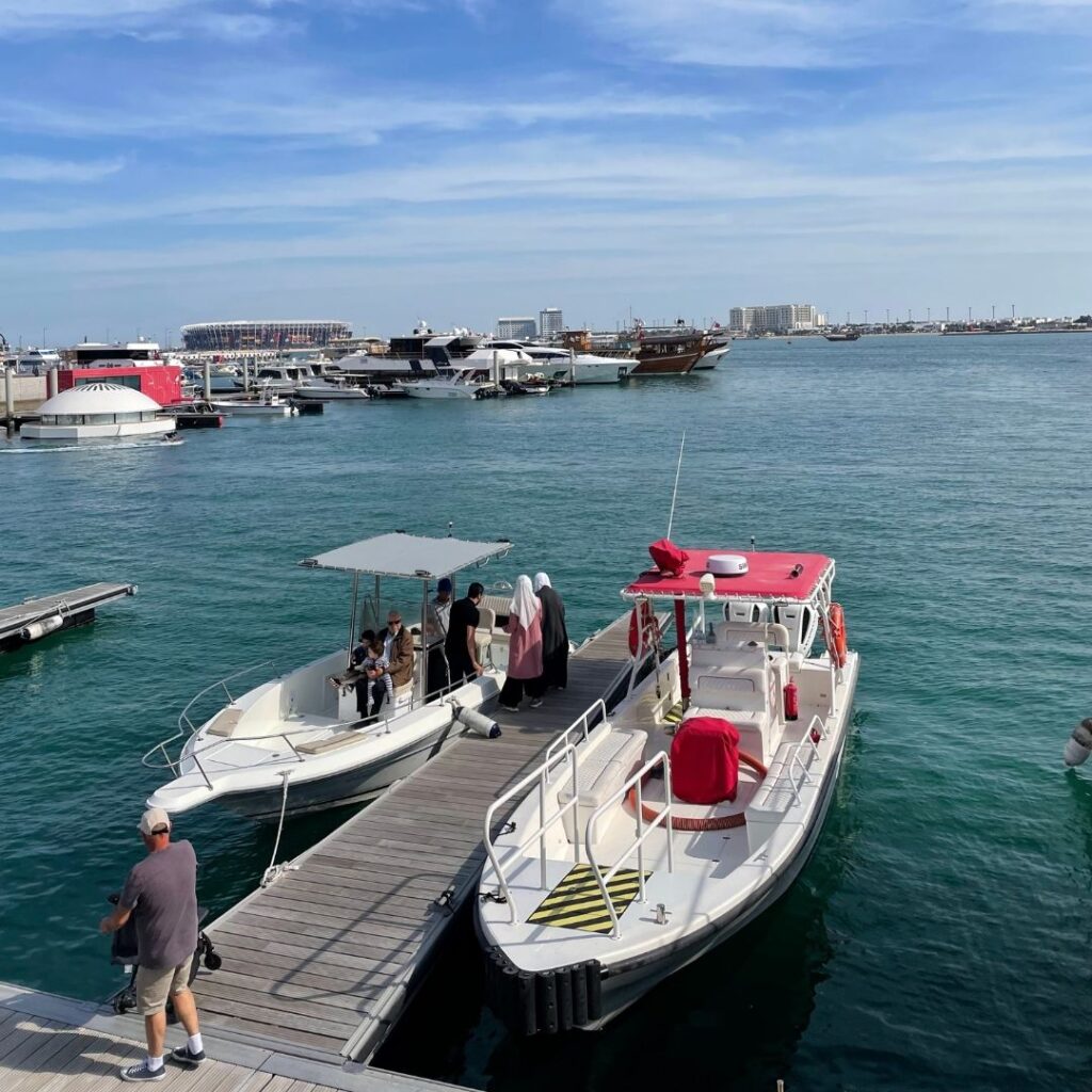 دو مارچ 2024 کی صبح، قطر میں ہمارے سفر کا تیسرا دن شروع ہوا۔ صبح ہم دوحہ کے مشہور ساحلی راستے “کورنیش” پر نکلے۔ سمندر کے کنارے ٹہلنے کا اپنا ہی مزہ ہے۔ ایک طرف نیلا پانی اور دوسری طرف بلند و بالا عمارتیں، یوں لگتا تھا جیسے جدیدیت اور قدرت ایک ہی منظر میں اکٹھی ہو گئی ہوں۔ خاص طور پر شیریٹن ہوٹل کے قریب کا حصہ تو اور بھی خوبصورت لگا۔ یہ ہوٹل نہ صرف قطر کی پہلی بڑی عمارتوں میں سے ہے بلکہ آج بھی اپنی منفرد ڈیزائن کی وجہ سے پہچانا جاتا ہے۔ وہاں بیٹھ کر ہم نے کافی دیر سمندر کو دیکھا اور یوں لگا جیسے وقت تھم سا گیا ہو۔ دلچسپ بات یہ ہے کہ اسی علاقے میں کشتیاں اور جیٹ اسکی کرائے پر لینے کی سہولت بھی موجود ہے۔ سیاح یہاں بوٹ رائیڈ یا جیٹ اسکی کے ذریعے سمندر میں ایڈونچر کا مزہ لیتے ہیں۔ ہم نے تو کچھ نہیں کیا، بس دوسروں کو دیکھتے رہے، لیکن منظر واقعی دلکش تھا۔