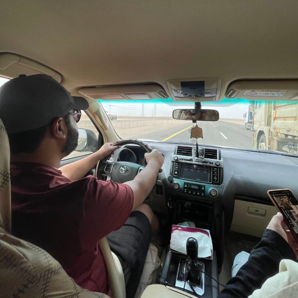 راستے میں سب سے پہلا بڑا شہر الاحساء آیا، جو اپنی کھجوروں کے باغات اور دنیا کے سب سے بڑے اویسس کی وجہ سے مشہور ہے۔ اس کے بعد ہفوف کے قریب سے گزرے جو اپنی پرانی مارکیٹوں اور عربی کلچر کی جھلک کے باعث پہچانا جاتا ہے۔ آگے چلتے ہوئے حرض آیا، جو ایک اہم صنعتی علاقہ ہے اور تیل و گیس کے پلانٹس کے لیے جانا جاتا ہے۔ کہیں صحرا کی ویرانی تو کہیں دور دور اونٹوں کے قافلے، اور کبھی کبھی چھوٹے قصبے—یہ سب مناظر سفر کو دلچسپ بناتے رہے۔